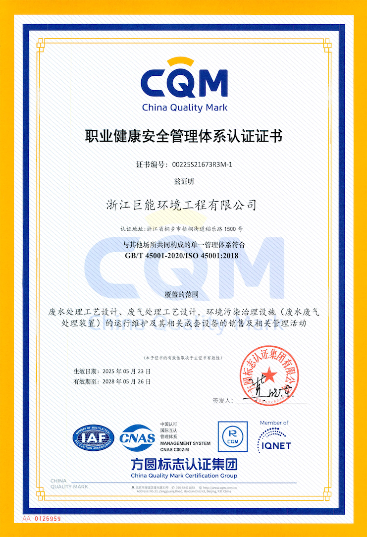 浙江巨能环境工程有限公司2009年创立于桐乡,隶属于博瑞德环境集团。巨能环境以保护人类赖以生存的水资源环境、提高人类生活质量为己任,经过十余年的发展,已成为水处理领域的优质服务商。公司集聚国内外高层次人才,依靠自主知识产权技术结合丰富的实践经验,为工业企业和工业园区提供水务及相关环保公用事业一站式解决方案。